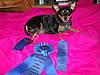 Officially she is in the breed "all American" aka Mutt, but both parents were registered full bloods (Min-pin and Chihuahua)